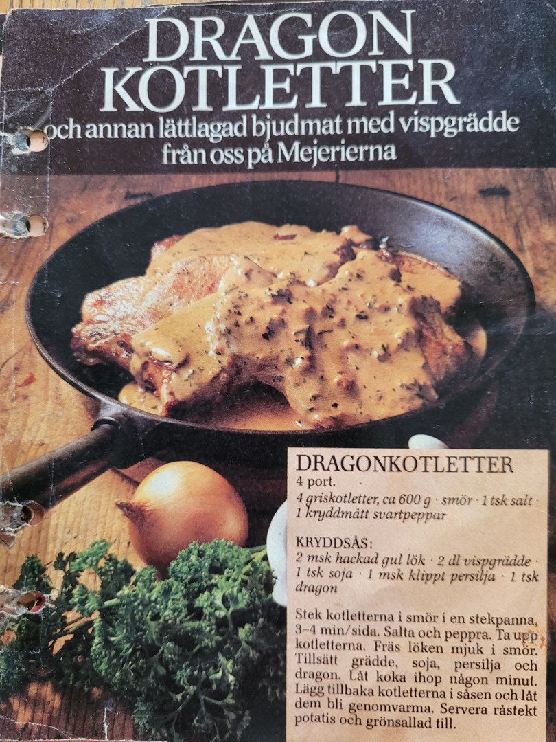Ojojoj, dragonkotletter har vi lagat _så_ många gånger. Såsen blir grymt god! Funkar lika bra med ris till, som potatis. Från Mejeriernas Recepttjänst. Recept: Jordbrukets provkök.